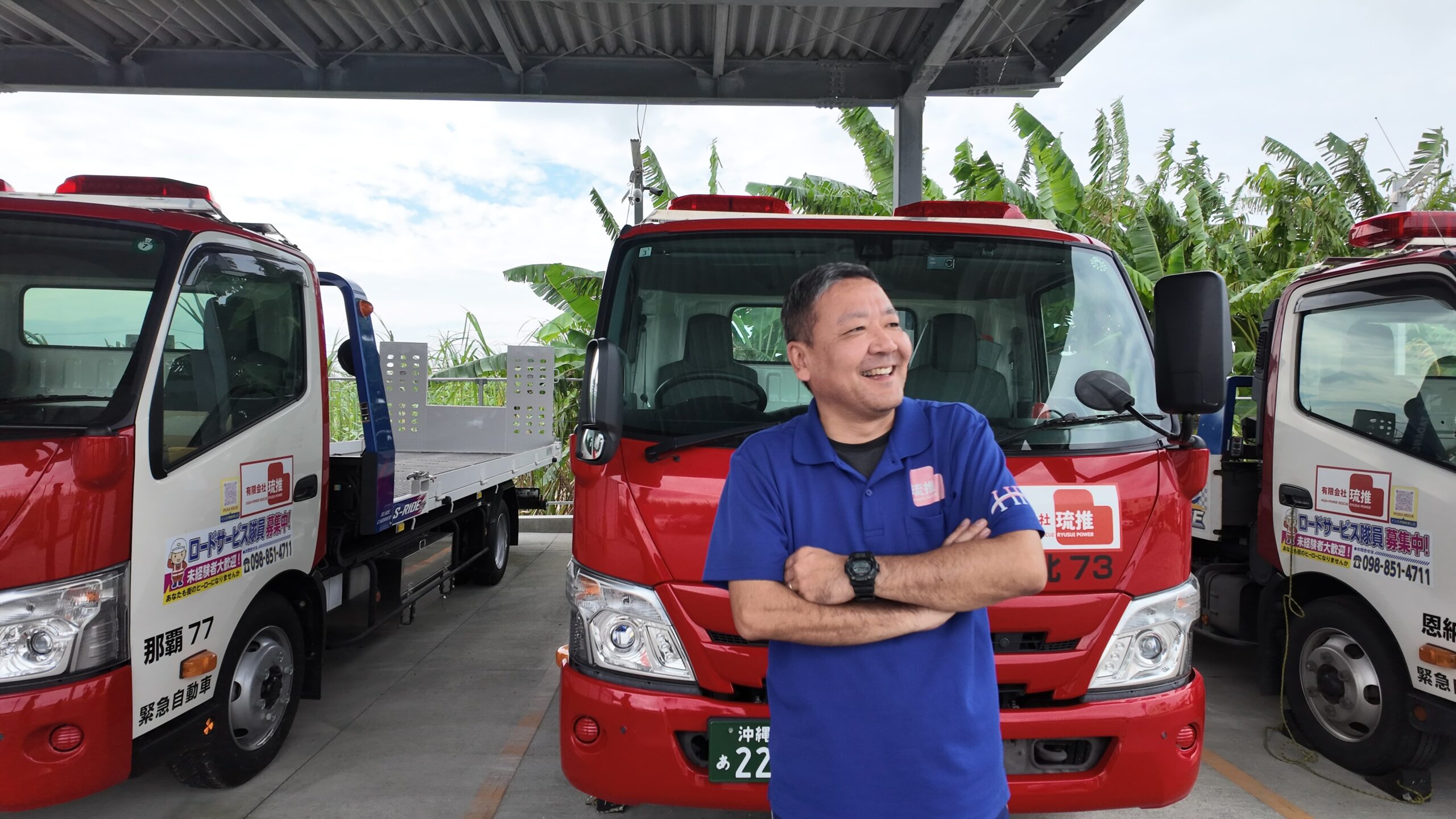 沖縄の青い空の下、私たちは今日も「安心」を運び続けています。